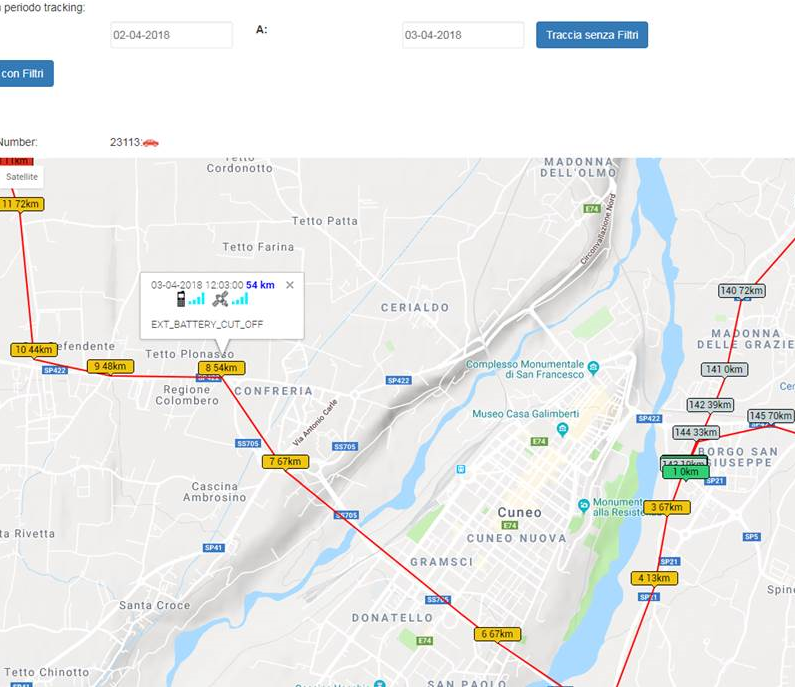Per ogni segnalazione d’Allarme, a seconda delle impostazioni , invia la segnalazione periodica mezzo una Chiamata Vocale ed un SMS con posizione satellitare direttamente su GOOGLE MAPS : mantenendo aggiornato il proprietario sugli spostamenti del mezzo ogni TOT tempo..